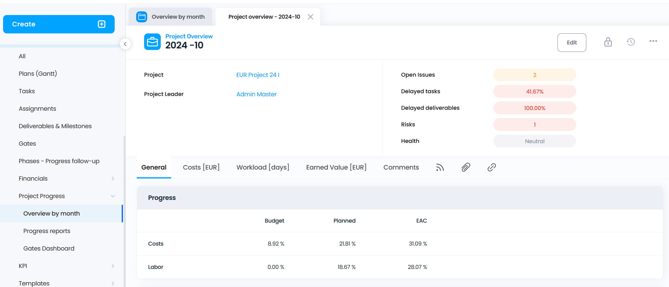 The document Project status report is an excellent combine of known Project report and Project overview. The report is a predefined form in Genius Project (enable subform to use this document). The document can be created manually with the "Create ...
